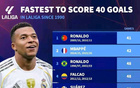 • 伯纳乌的新王:姆巴佩以42场40球,加冕西甲历史第二人